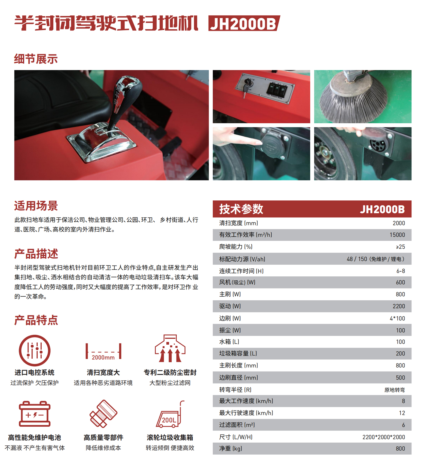 此款掃地車適用于保潔公司、物業管理公司、公園、環衛、鄉村街道、人行道、醫院、廣場、高校的室內外清掃作業。