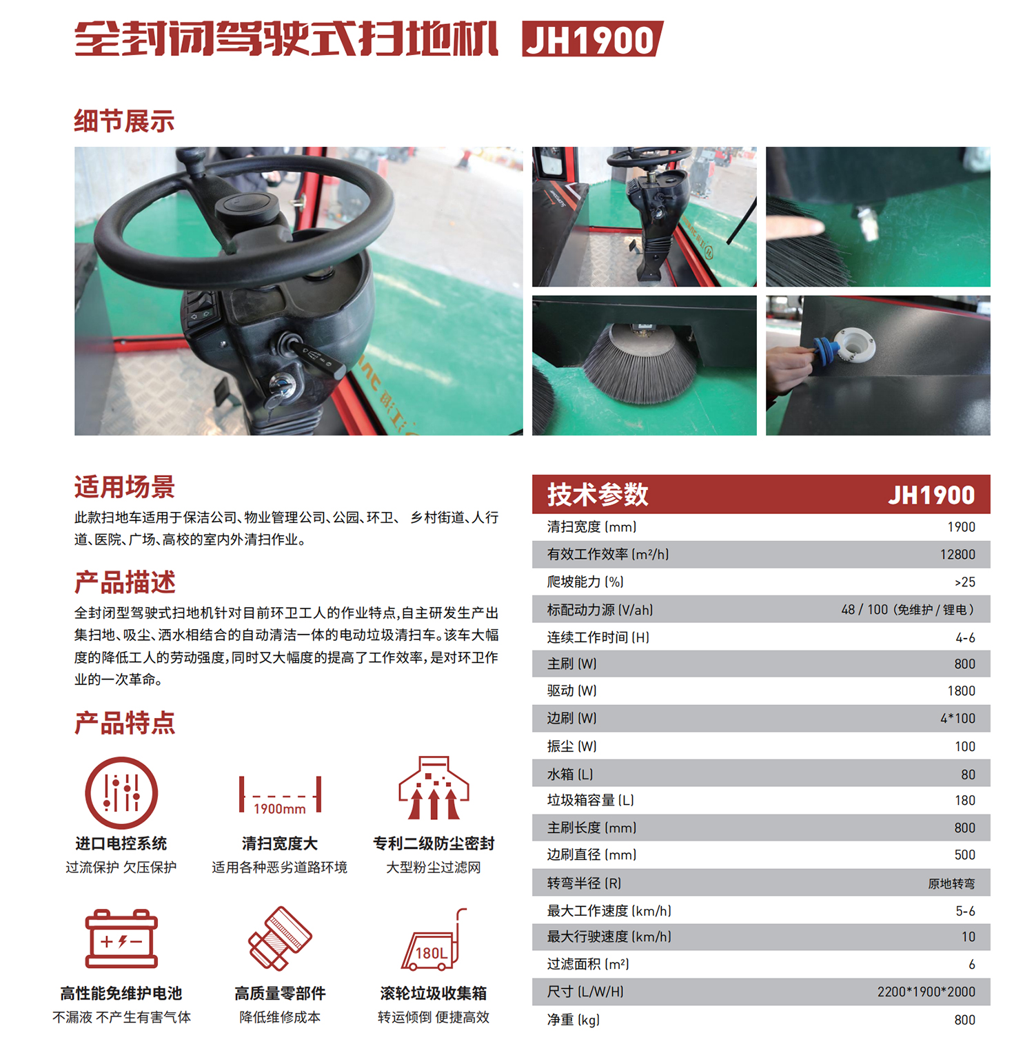 此款掃地車適用于保潔公司、物業管理公司、公園、環衛、鄉村街道、人行道、醫院、廣場、高校的室內外清掃作業。、