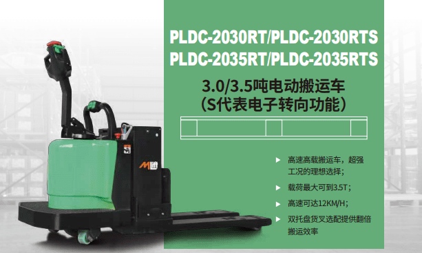 三菱叉車PLDC-2035RTS 3.5噸電動搬運車高速高載搬運車,超強工況的理想選擇;載荷最大可到3.5T;高速可達12KM/H;雙托盤貨叉選配提供翻倍搬運效率高性能,高可靠∶交流風動系統,提供強勁動力;控制更精確,運行更平穩;高強度立式變速箱,超長工作壽命;低噪低故障...
