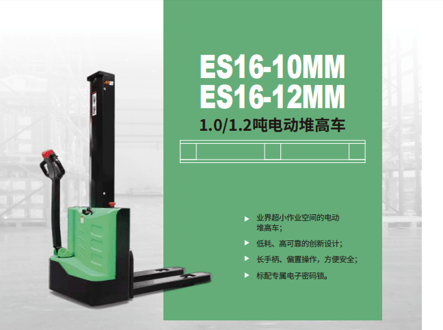 三菱叉車 ES16-10MM 1.0噸電動堆高車車業界超小作業空間的電動堆高車;低耗、高可靠的創新設計;長手柄、偏置操作,方便安全;標配專屬電子密碼鎖。高性能,高可靠∶高強度結構設計;專用驅動、液壓系統,保證整車運行高可靠;低噪低故障液壓站,經過多層檢測測試的...